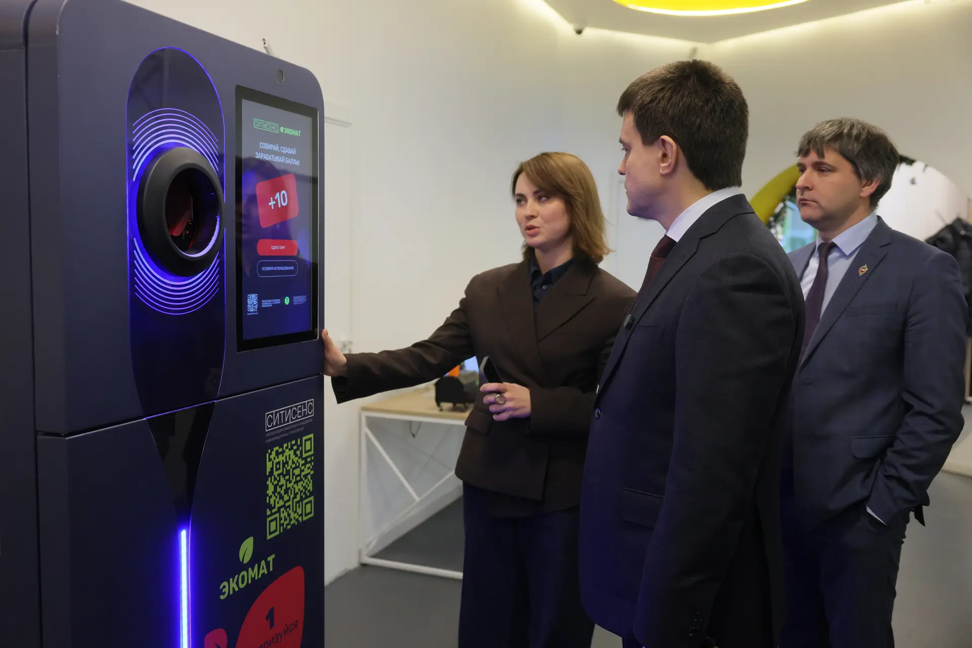 Команда ООО «Ситисенс» продемонстрировала губернатору Красноярского края Михаилу Котюкову проект «Экомат», который был разработан и реализован благодаря программе грантовой поддержки.